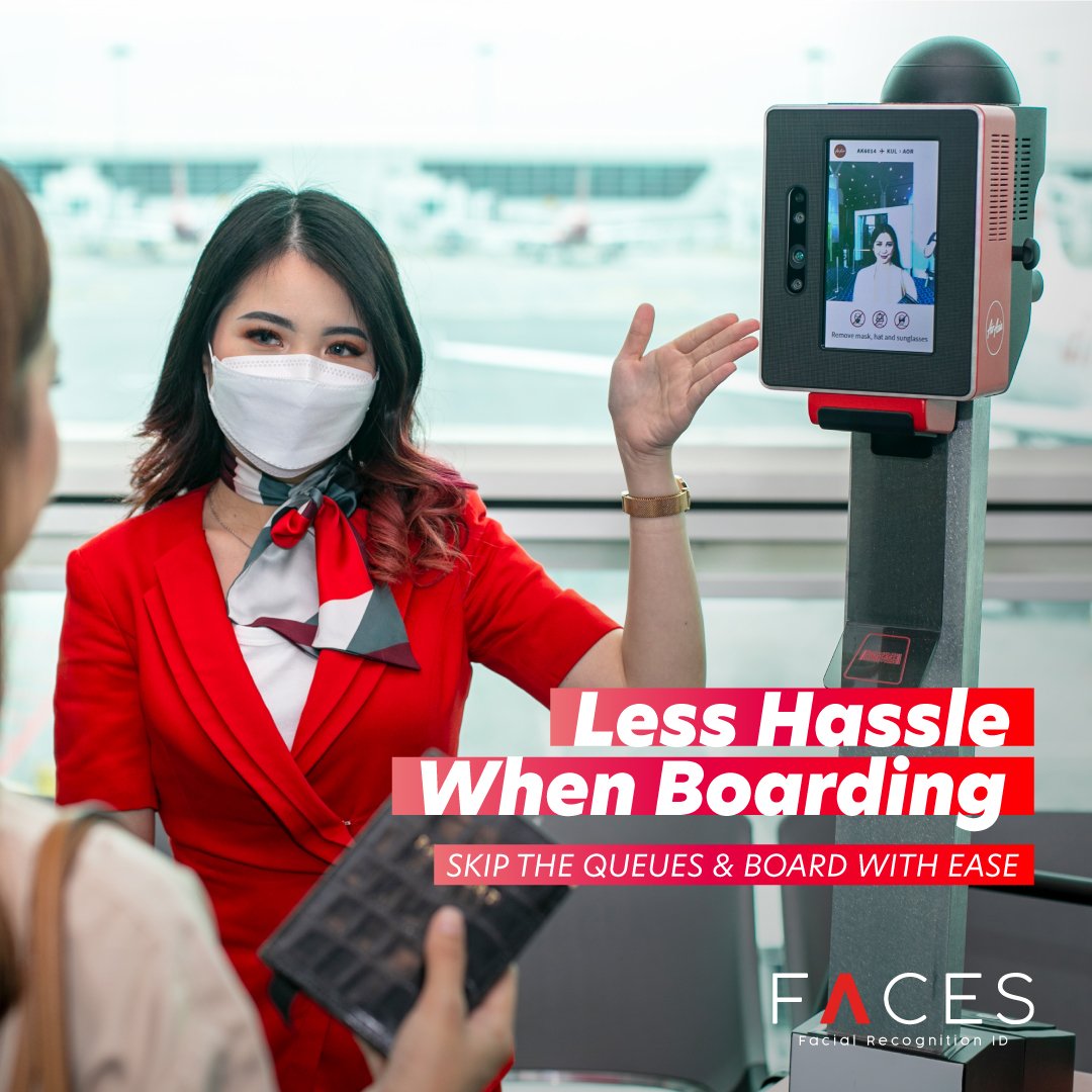 FACES kini tersedia untuk perjalanan domestik terpilih dalam fasa permulaan merentasi titik sentuh pengguna utama seperti pendaftaran telefon pintar, kaunter daftar masuk, semakan pra-keselamatan dan menaiki pesawat. Tetamu yang telah mendaftar dalam FACES menggunakan airasia Super App kini boleh transit dengan lancar dari ketibaan lapangan terbang ke pintu berlepas ke pesawat tanpa perlu menyerahkan kad masuk mereka selepas daftar masuk sendiri.