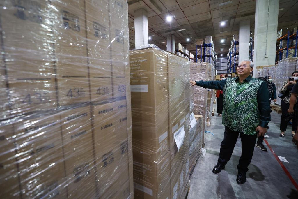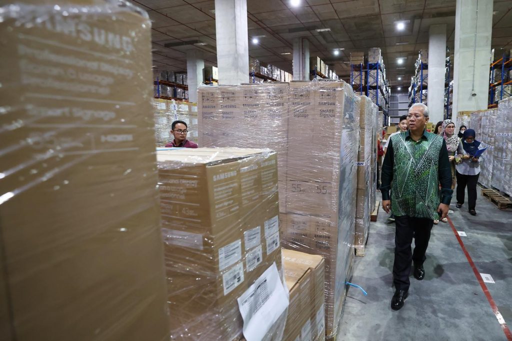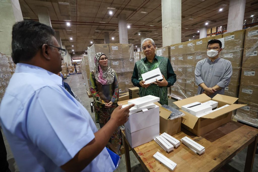 Tan Sri Annuar Musa sendiri telah pergi ke gudang yang menempatkan stok Peranti Siswa baru-baru ini untuk melihat sendiri stok yang baru tiba bagi memastikan tiada kelewatan dalam pengurusan stok.